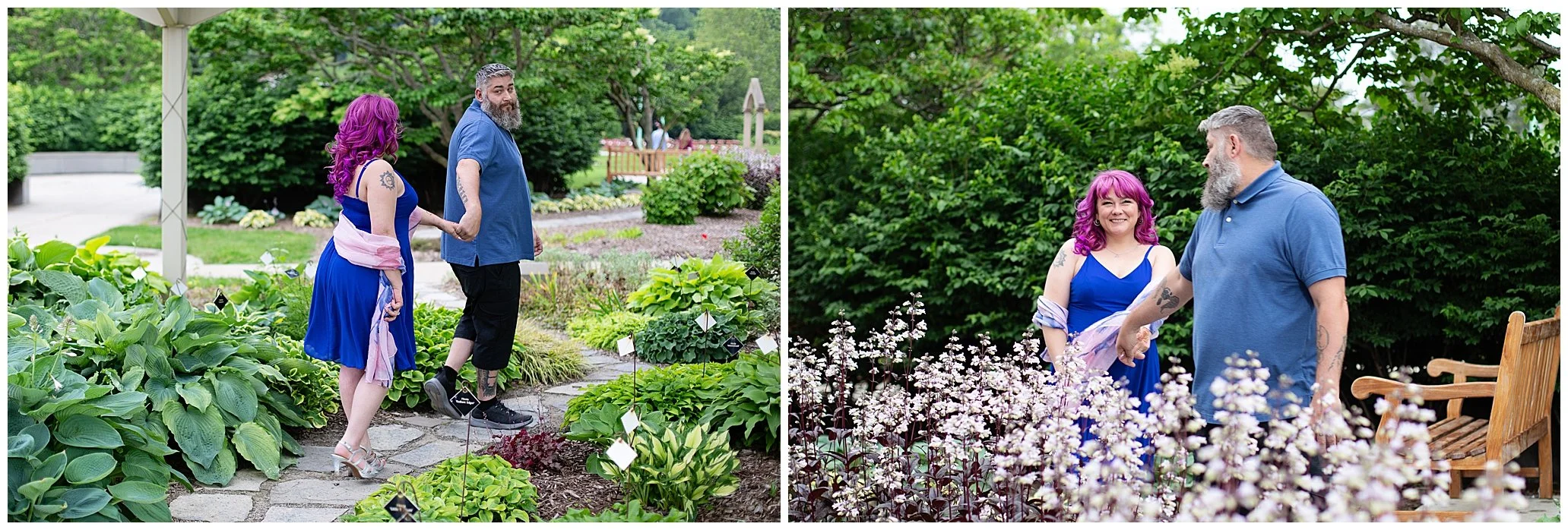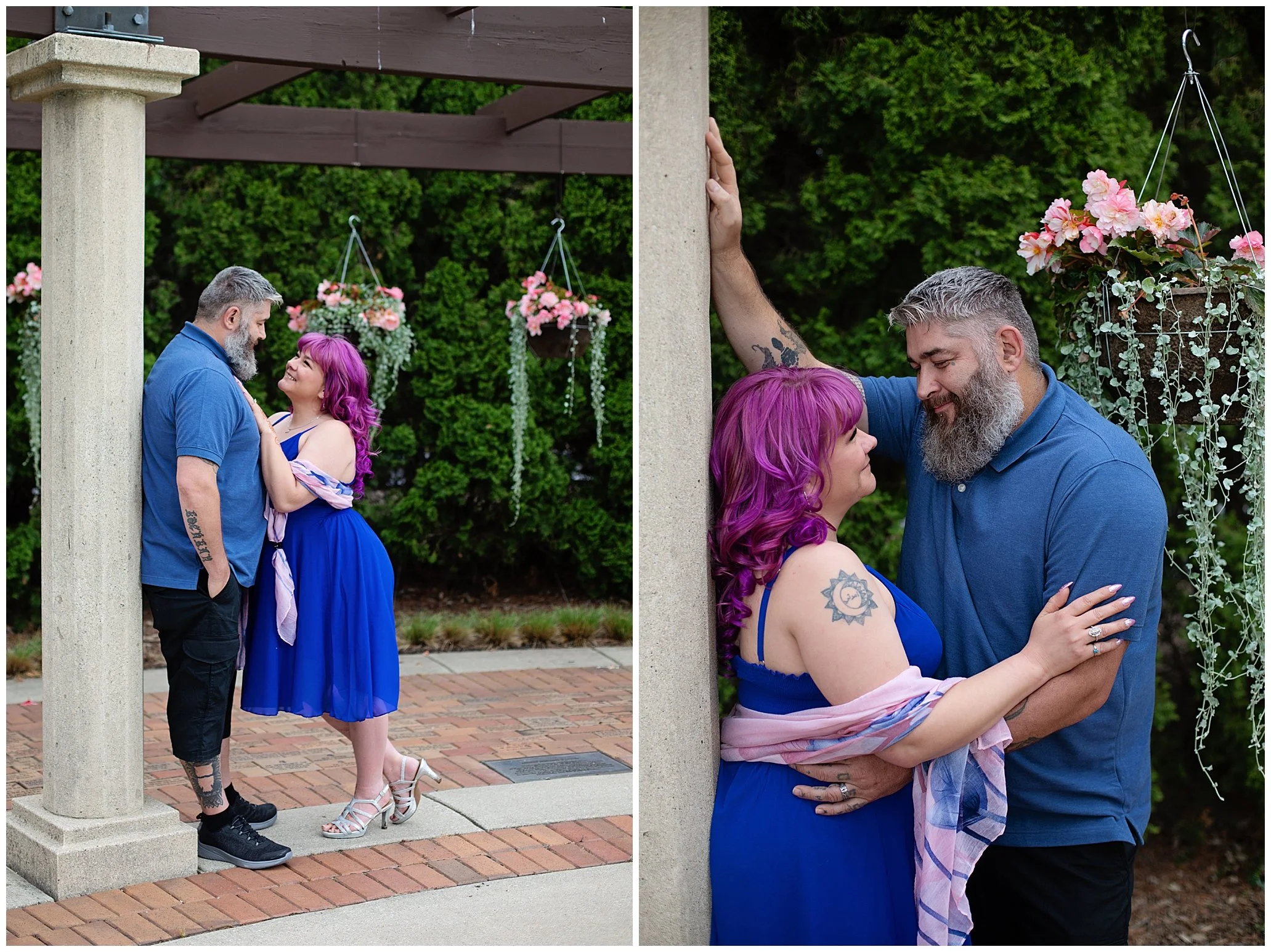 Surrounded by vibrant flowers and golden light, their laughter and love filled every frame with Meeganβs stunning purple hair shimmering like a wildflower among the blooms.